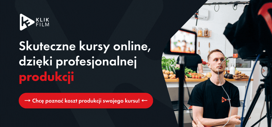 Jeśli chcesz ogarnąć cały proces tworzenia kursu razem z profesjonalnym wsparciem, możesz skorzystać z naszego domu produkcyjnego Klik Film.